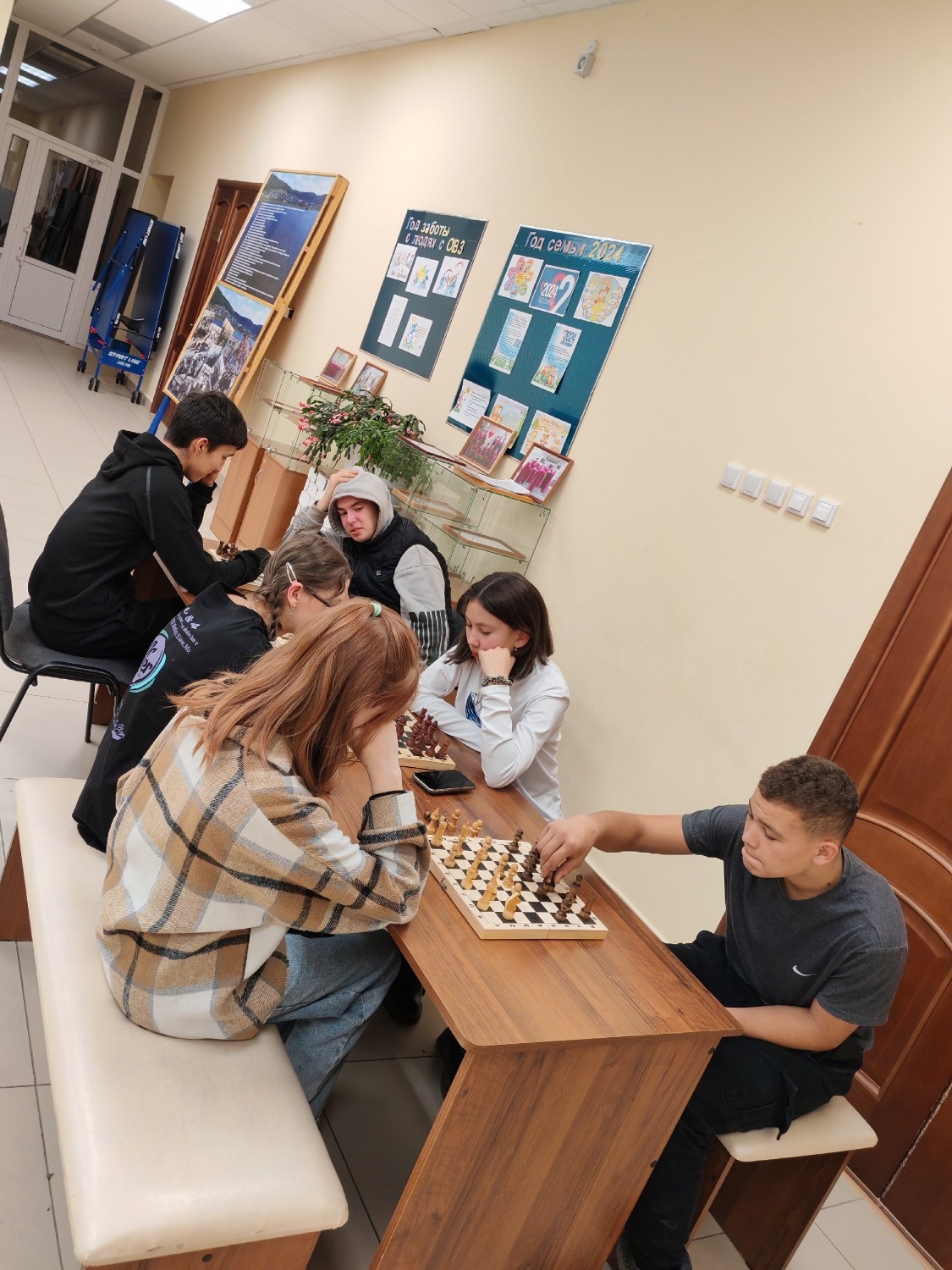 Частые посетители нашего клуба - дети. Они играют в настольный теннис, в шашки, общаются друг с другом, а еще смотрят мультипликационные и познавательные фильмы на большом экране.
