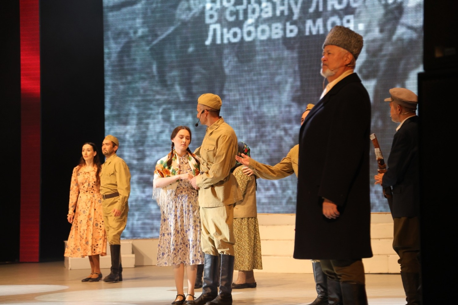 На сцене вечера выступили известные артисты, среди которых оперный певец Аскар Абдразаков, ранее уже выступавший в Донецке, а также эстрадные исполнители: Назифа Кадырова, Анвар Нургалиев, Алена Завьялова, Геннадий Родионов, Рамиль Бадамшин и многие другие.