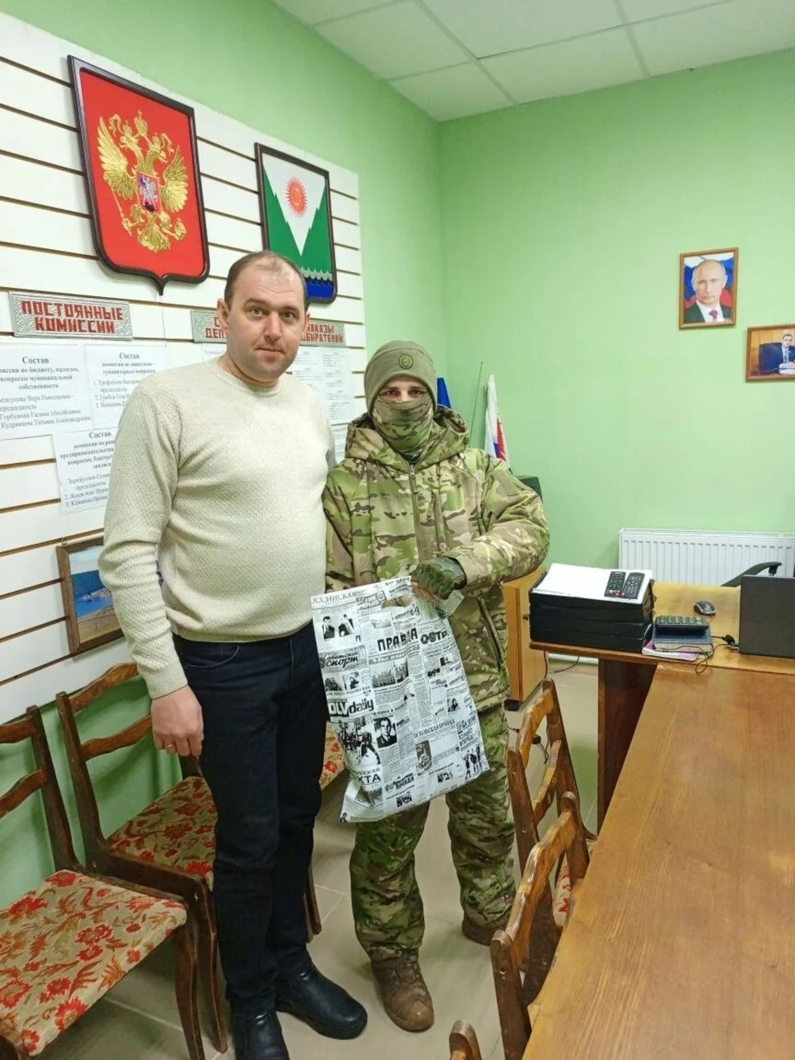 В завершение встречи Алексей Андреевич поблагодарил земляка за активную гражданскую позицию и достойную службу Отечеству, пожелал успехов, беречь себя и вернуться домой здоровым и с победой и вручил памятный подарок в преддверии празднования Дня защитника Отечества.