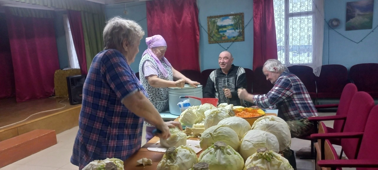 В Байкинском СДК активисты села продолжают плести маскировочные сети, также параллельно приготовили соленую капусту для отправки нашим бойцам на СВО.