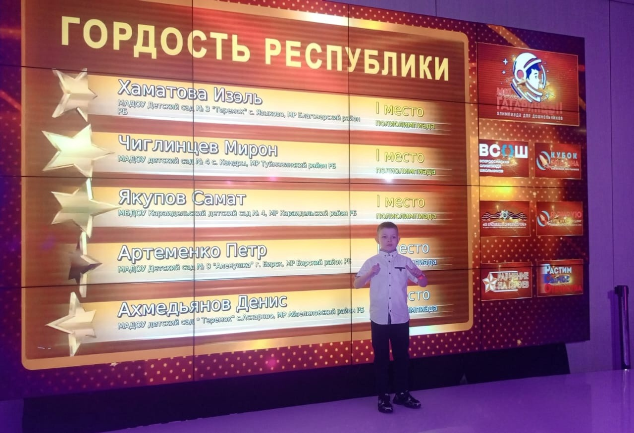Караидельский район представил воспитанник детского сада №4 Самат Якупов. Его талант и усердие принесли заслуженную победу в республиканском этапе олимпиады по направлению полиолимпиада. Самат продемонстрировал выдающиеся знания и нестандартное мышление, обойдя множество талантливых сверстников со всей республики.