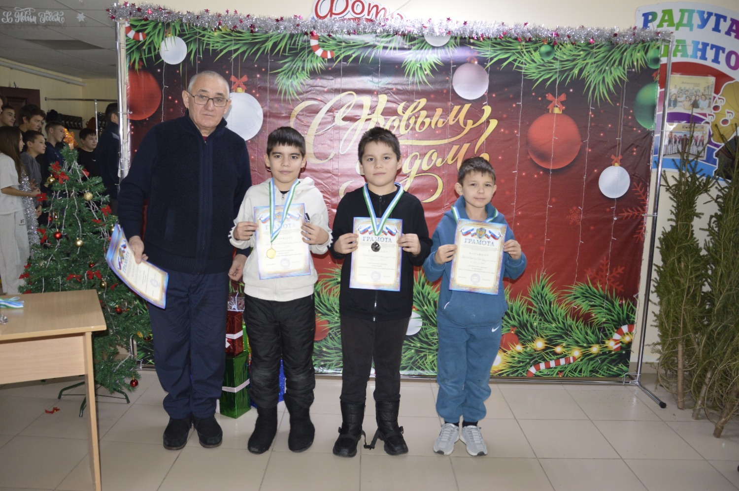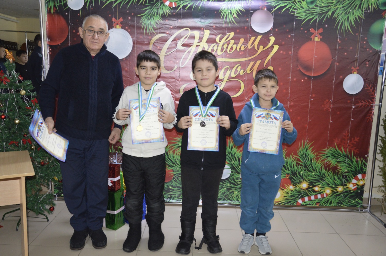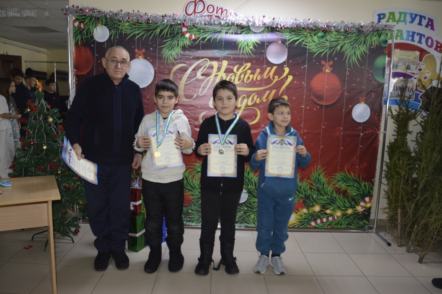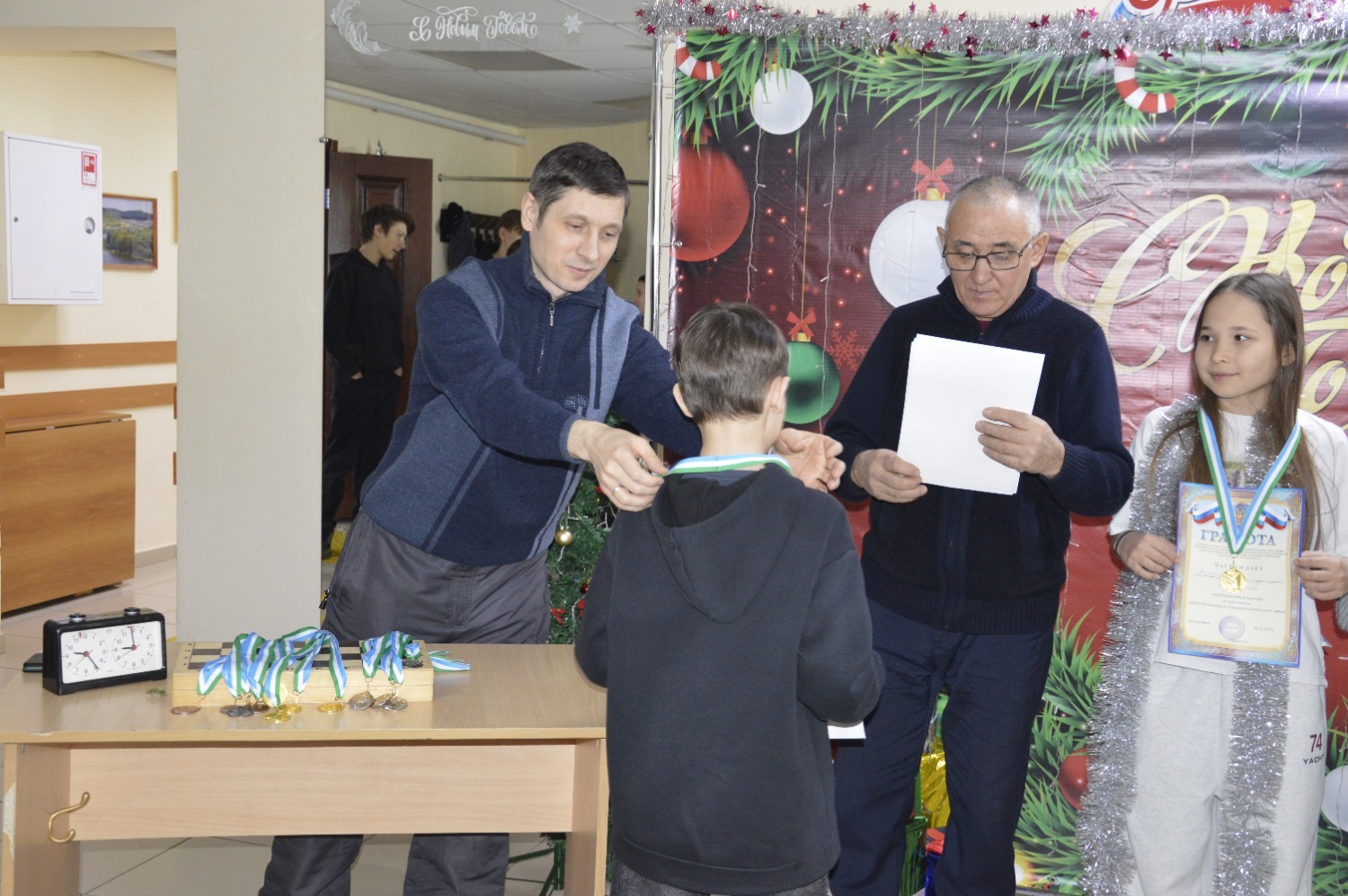 По завершении турнира судьи вручили дипломы и медали победителям. За первое место шахматистам подарили новогодние елки. Организаторы также поздравили всех участников с наступающим праздником.