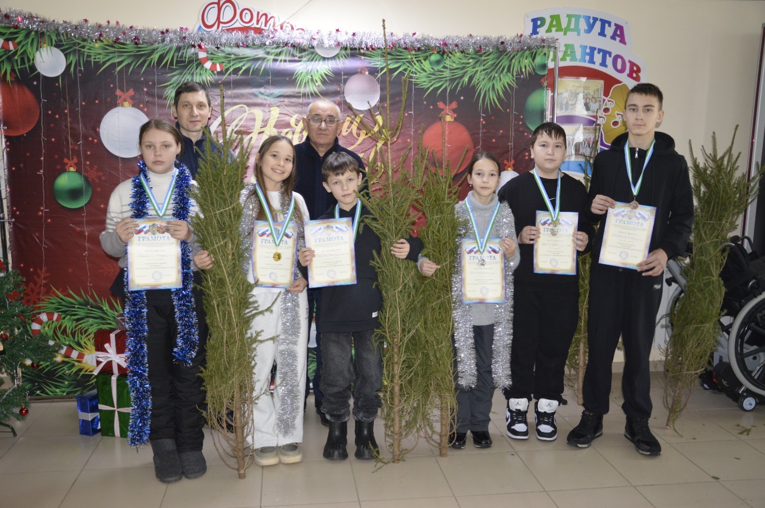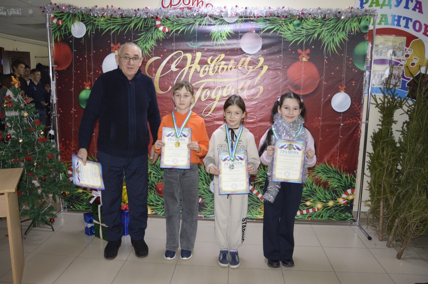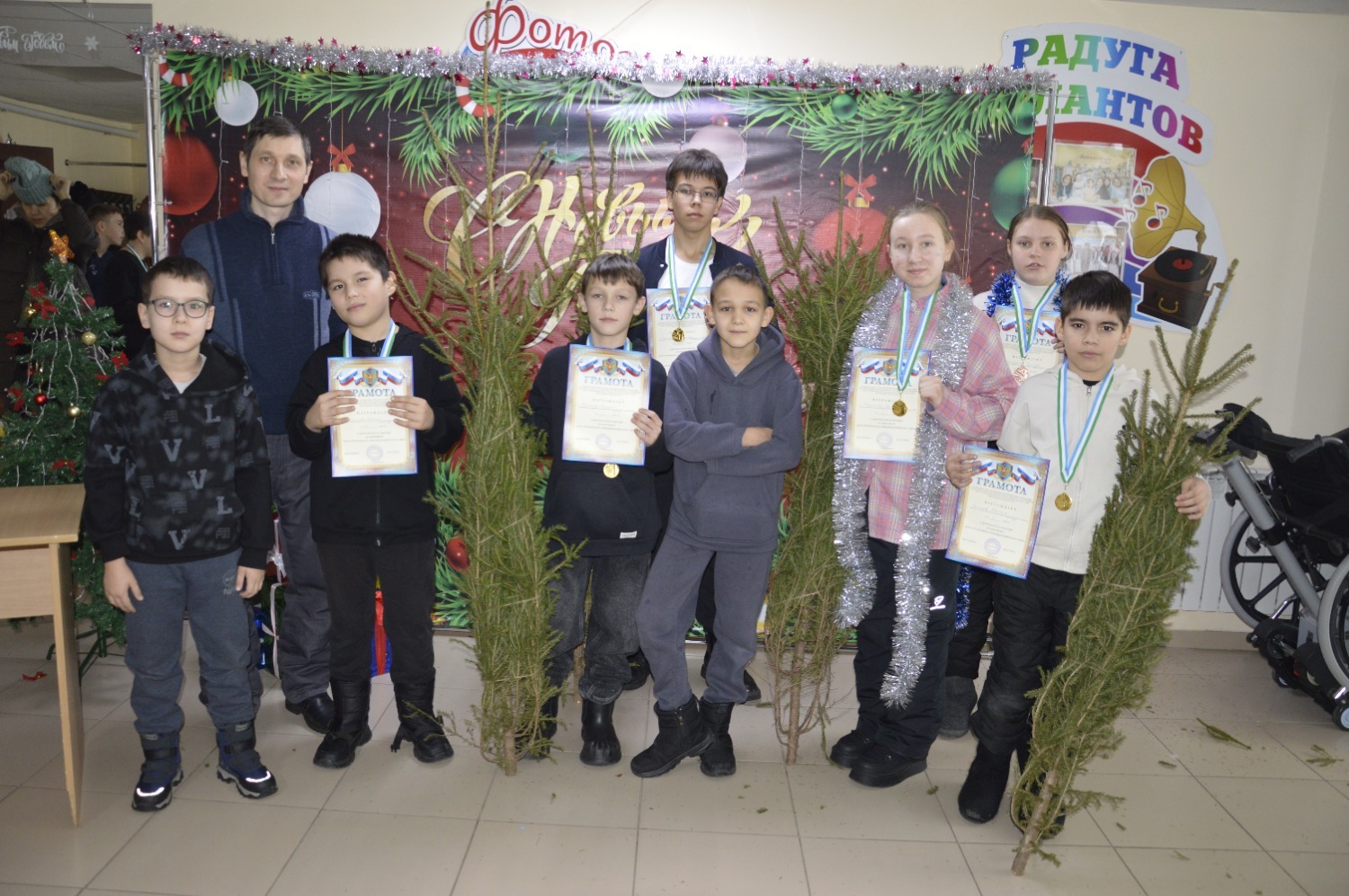 По завершении турнира судьи вручили дипломы и медали победителям. За первое место шахматистам подарили новогодние елки. Организаторы также поздравили всех участников с наступающим праздником.