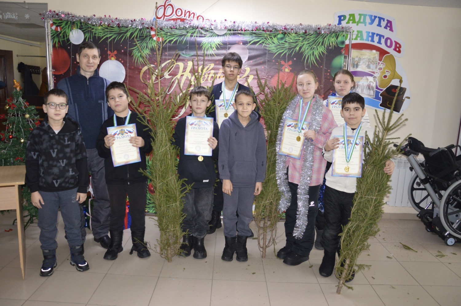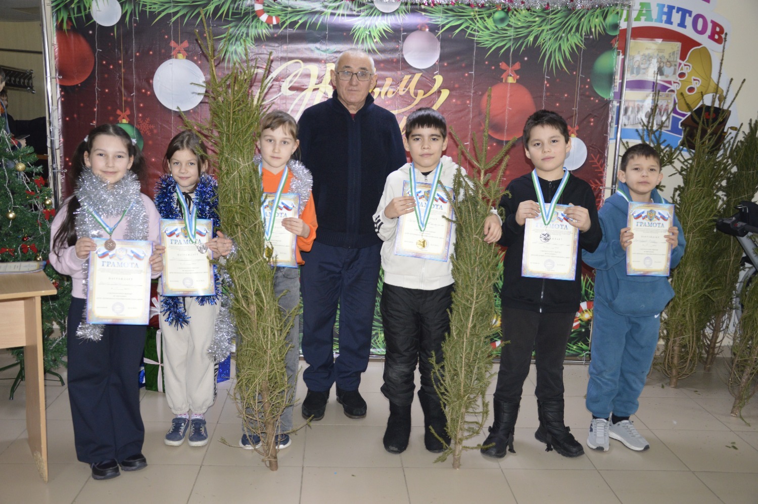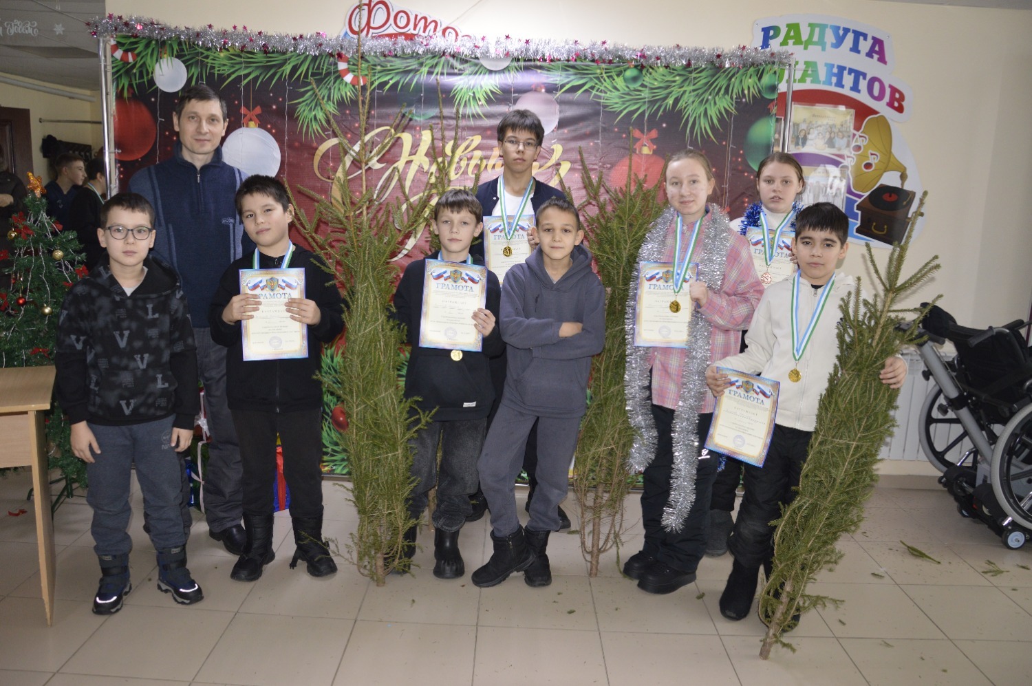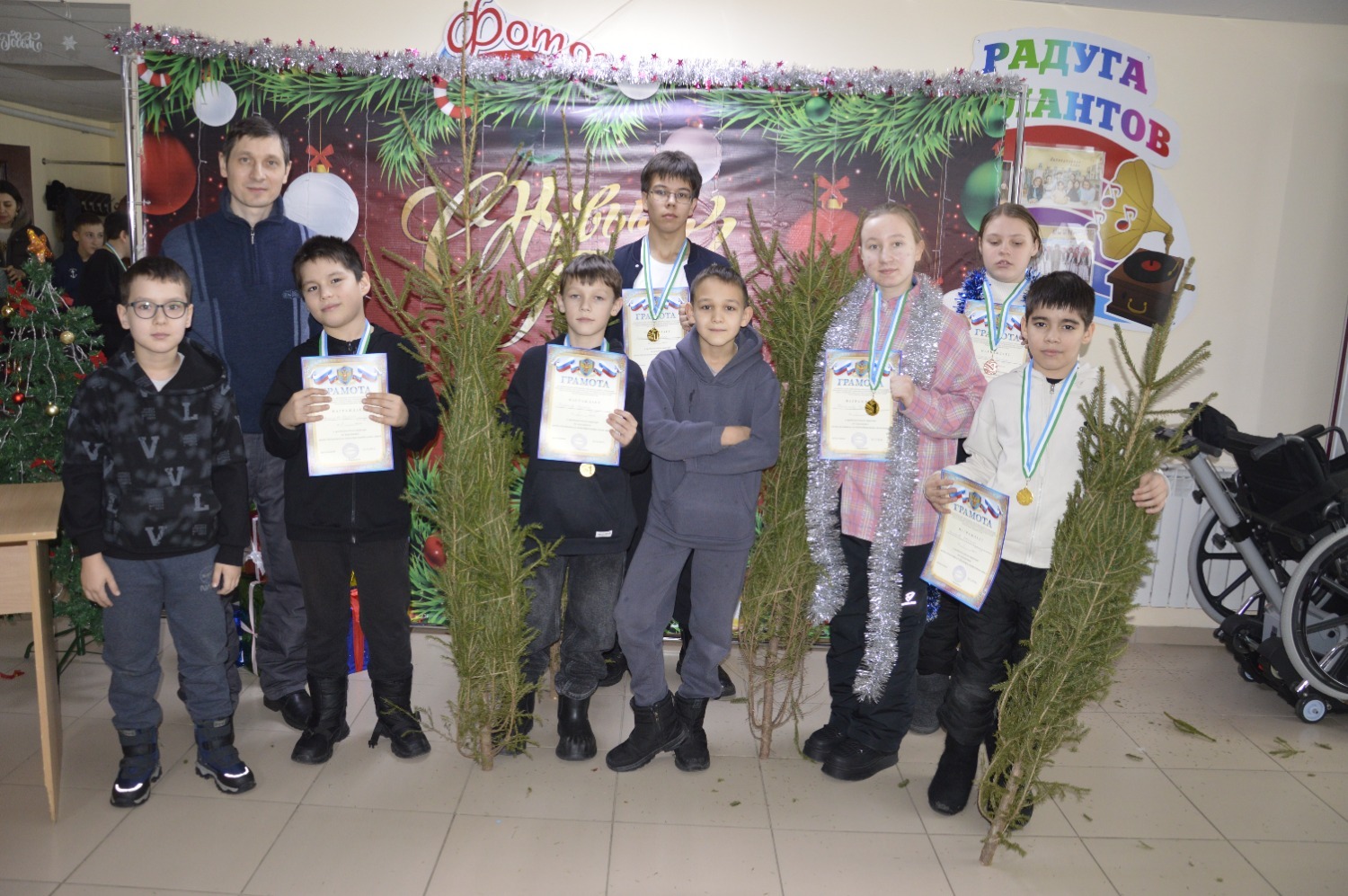 По завершении турнира судьи вручили дипломы и медали победителям. За первое место шахматистам подарили новогодние елки. Организаторы также поздравили всех участников с наступающим праздником.
