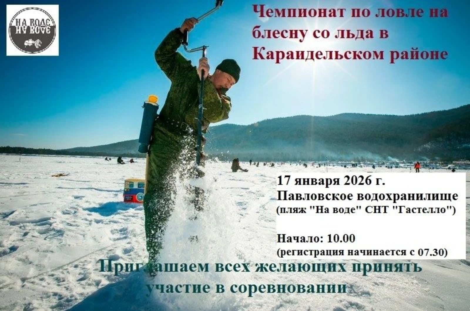 База отдыха «На воде» (ООО «МагнатСтрой») при поддержке администрации МР Караидельский район приглашает к участию в первом соревновании 2026 года по подледной рыбалке.
