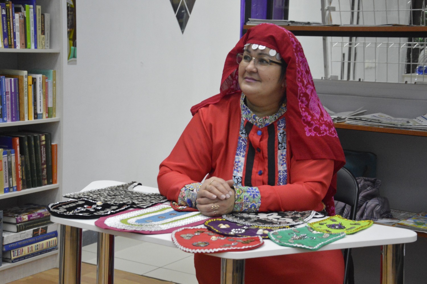 Первой участницей нашей точки концентрации стала мастер Муллаярова Лениза Мадехатовна, которая с энтузиазмом создает народные украшения и восстанавливает национальные костюмы, внося значительный вклад в сохранение и распространение башкирской культуры и традиций.