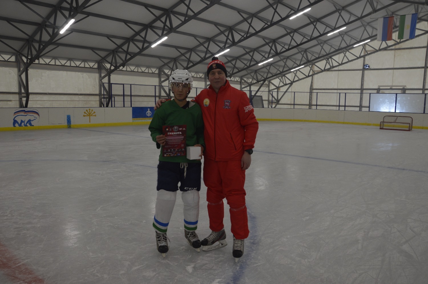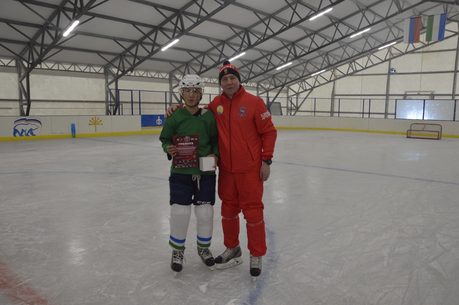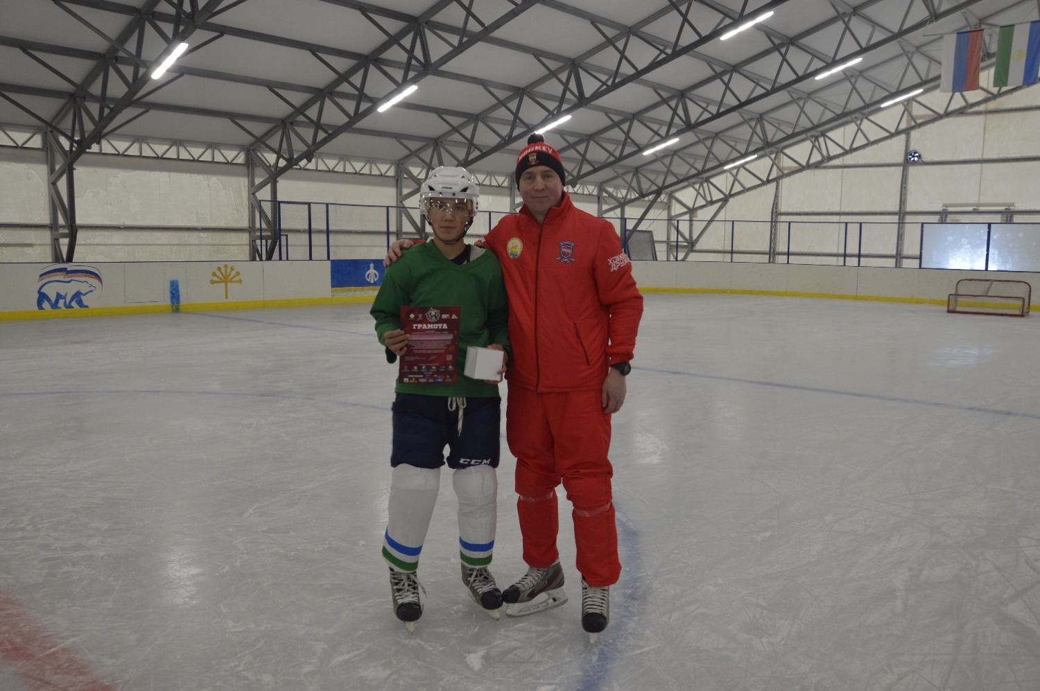 Проект «Межрегиональный турнир по хоккею с шайбой имени героя-разведчика Даяна Баяновича Мурзина, посвященный Году защитника Отечества» реализуется при поддержке Фонда Президентских Грантов.