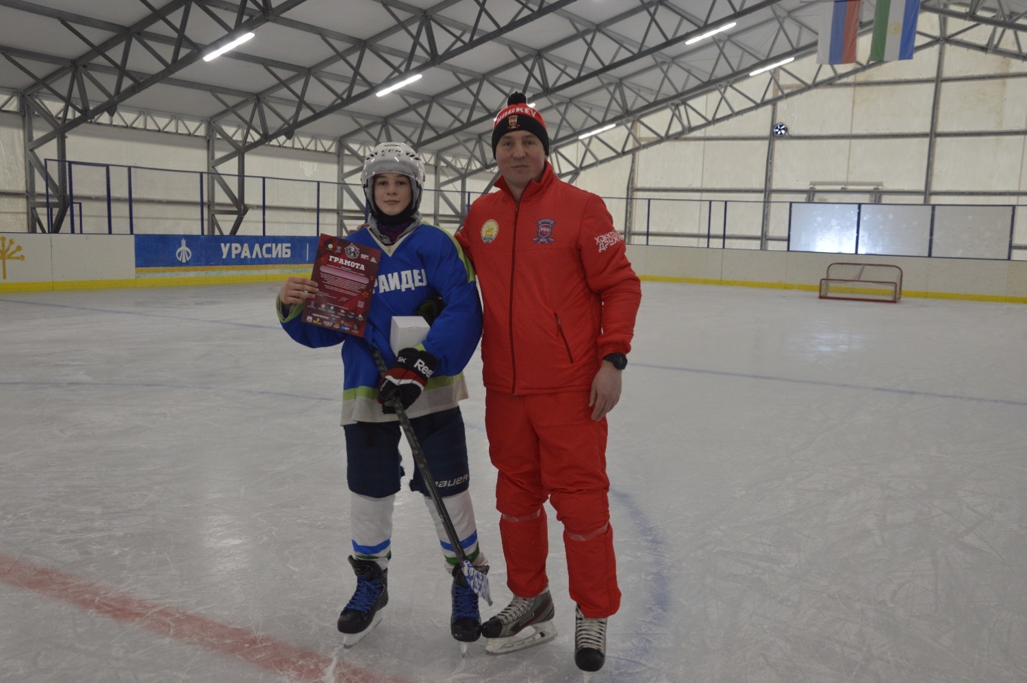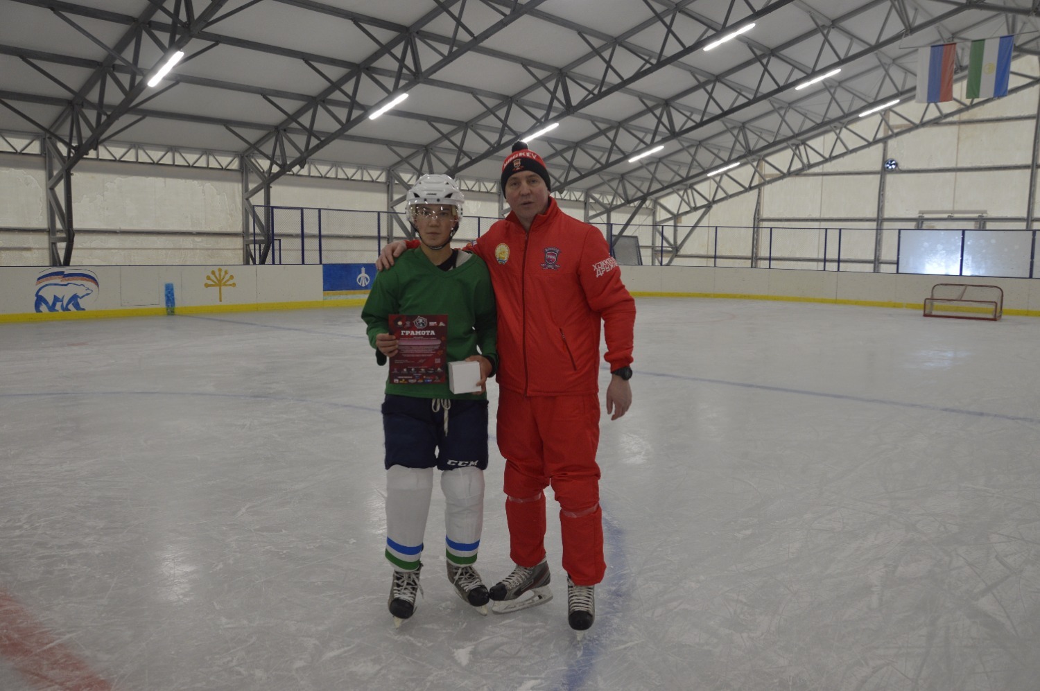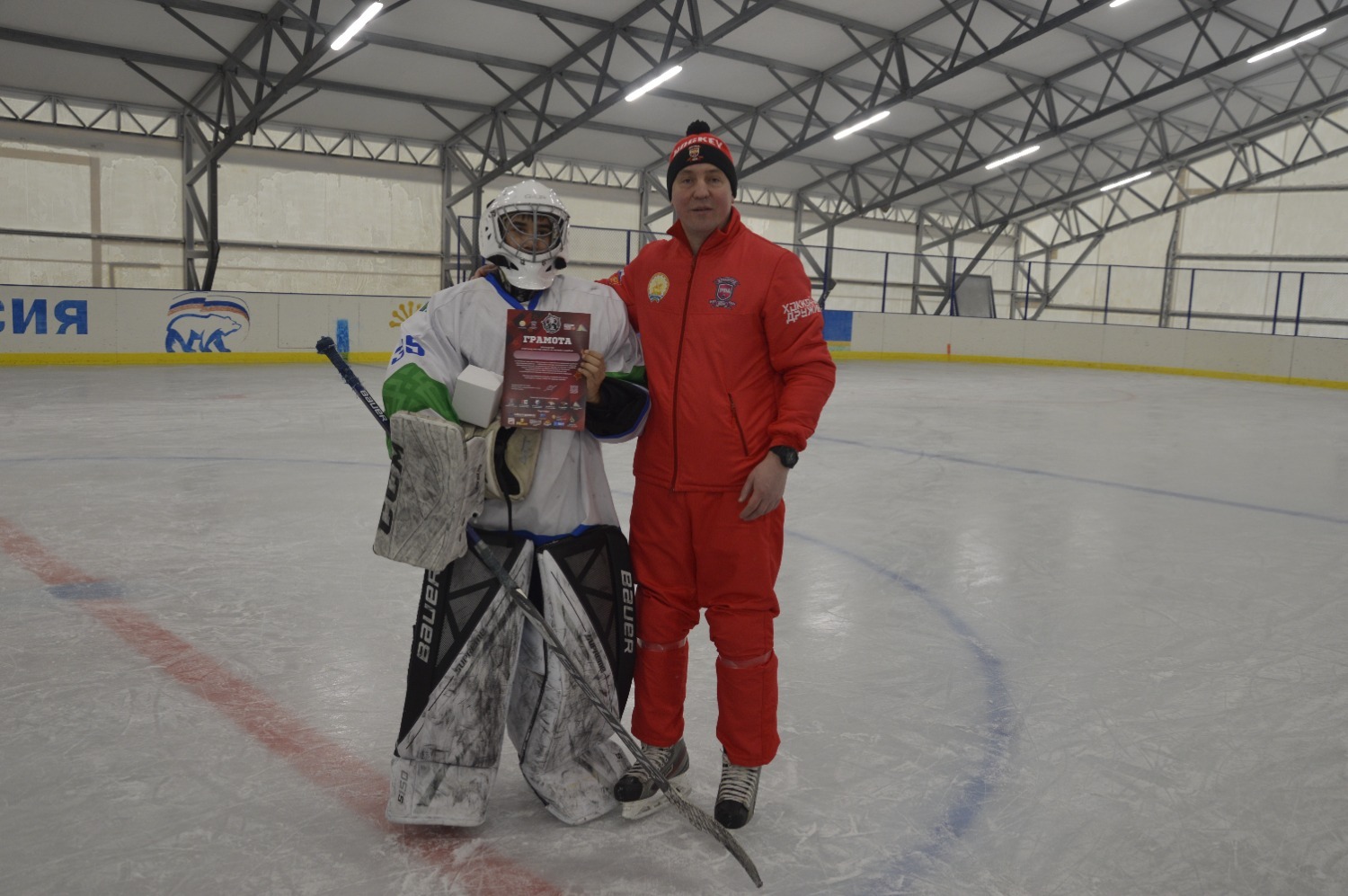 Проект «Межрегиональный турнир по хоккею с шайбой имени героя-разведчика Даяна Баяновича Мурзина, посвященный Году защитника Отечества» реализуется при поддержке Фонда Президентских Грантов.