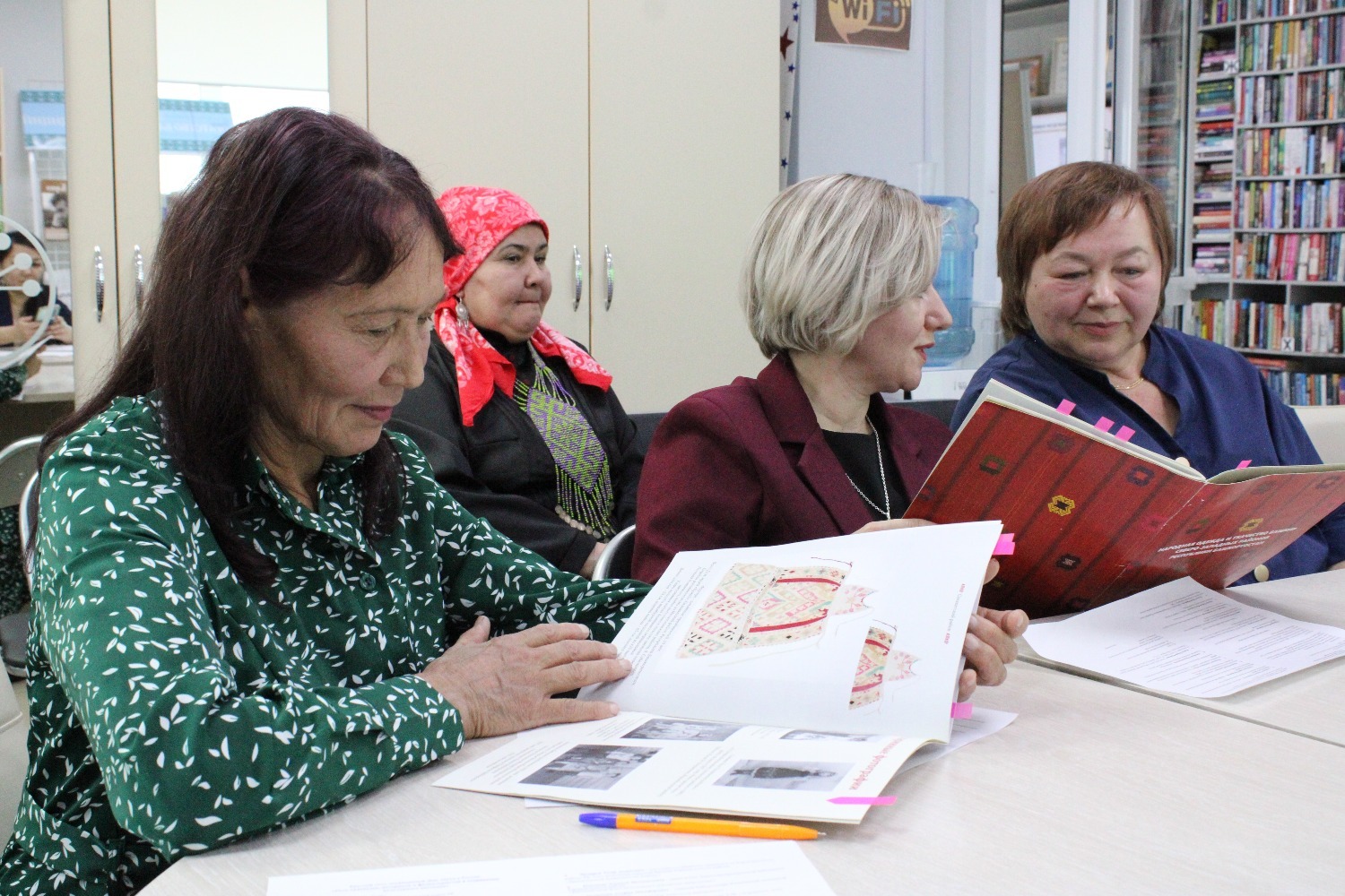 Специалист по фольклору РДК с. Караидель Юлия Валиева и культорганизатор СМФК, руководитель фольклорного коллектива “Серҙәштәр” Зиля Рахматова, руководитель НАНТ «Йәшлек» Рафиля Мунирова обсудили развитие и популяризацию народного творчества. Они рассказали о работе по возрождению национальных костюмов в Караидельском районе, акцентируя внимание на значении культурной самобытности и идентичности в современном обществе.