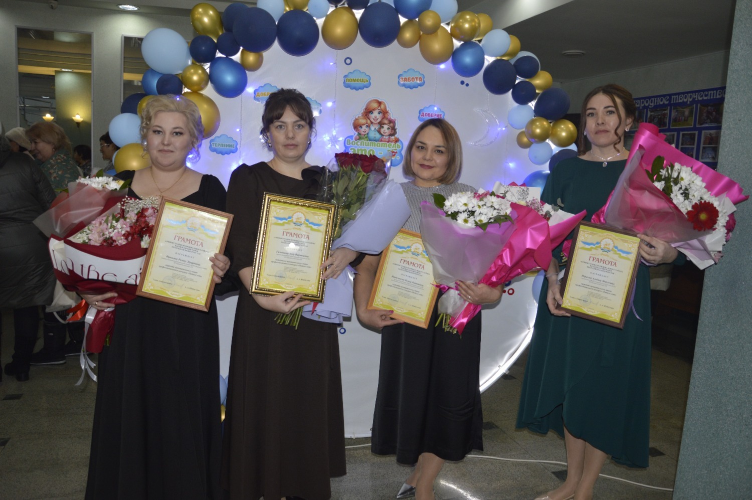 В ходе торжества за добросовестный труд Почетными грамотами Министерства просвещения Республики Башкортостан были отмечены главный юрисконсульт отдела образования Марина Тимербулатова, учитель начальных классов Атняшской ООШ Татьяна Черепанова, учитель физической культуры Куртлыкульской СОШ Илюс Гаитов и учитель начальных классов Магинской СОШ Татьяна Патрушева.