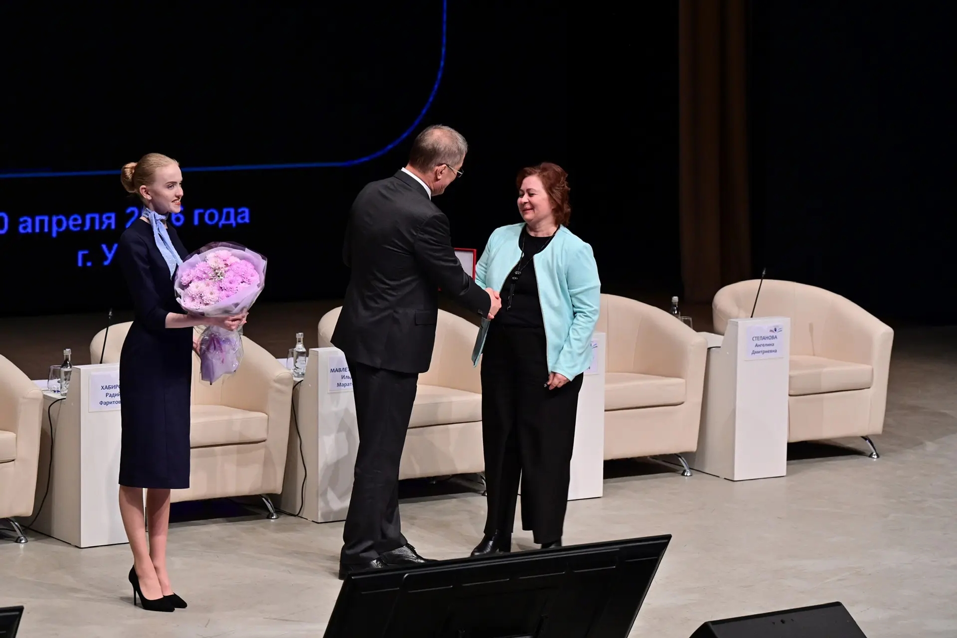 Кульминацией форума стало торжественное вручение заслуженных званий. Среди награжденных - Елена Гибадуллина, удостоенная Почетного звания «Заслуженный работник образования РБ». От всей души поздравляем Елену Сергеевну, желая ей неиссякаемых сил, энергии и дальнейших творческих успехов в ее благородной деятельности.