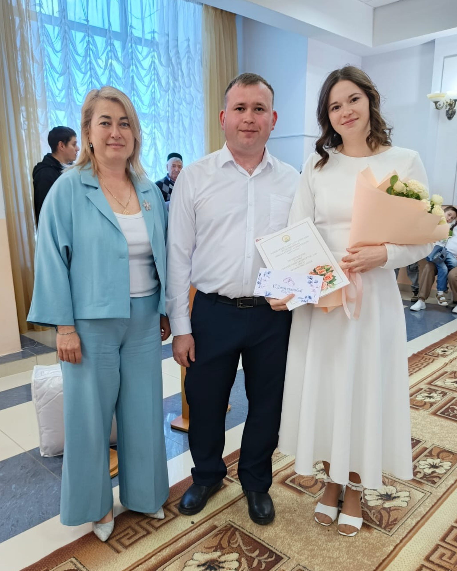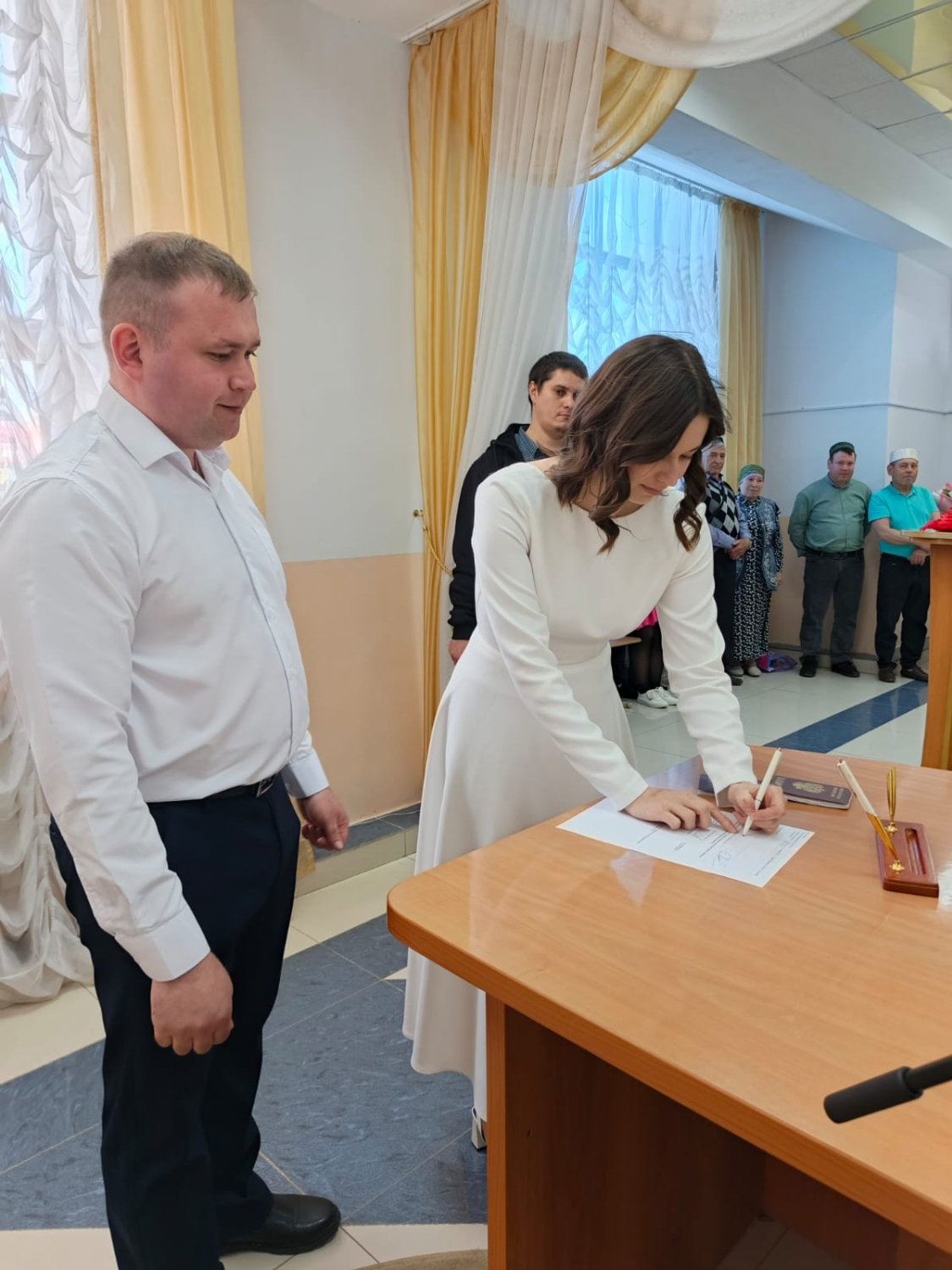 Сегодня такая торжественная церемония бракосочетания прошла и в Караидельском районе. Узами брака сочетались Галины Ильнур Римович (уроженец д.Куянчи) и Снежана Анатольевна (с.Новомуллакаево).