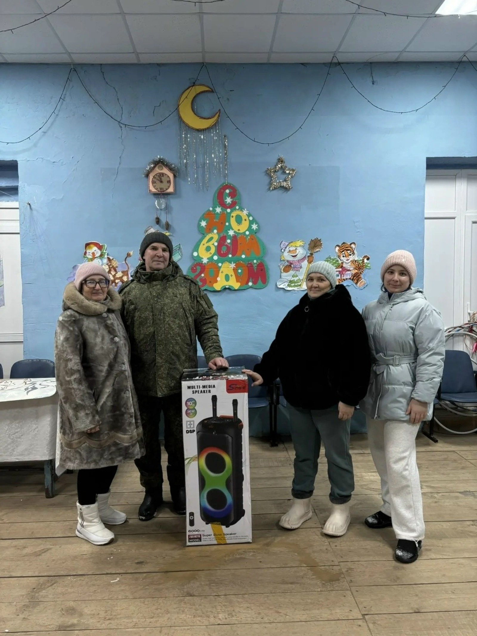 В окружении детей, внуков быстро пролетели две недели. В день отъезда Владимир Сергеевич с супругой Людмилой Васильевной приготовили большой сюрприз для односельчан. В канун Нового года они сделали щедрый презент Раздольинскому сельскому клубу - передали в дар музыкальную колонку.