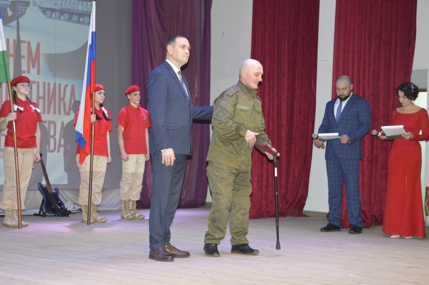 Со значимым праздником собравшихся поздравил военный комиссар Караидельского и Аскинского районов Азат Исмагилов. Он передал Благодарственное письмо за участие в оказании материальной помощи медицинскому отряду специального назначения 425-го военного госпиталя г.Новосибирск и медаль «Волонтер России» генеральному директору ООО «ЛесЦентр» Артуру Ибрагимову. Такое же Благодарственное письмо военком вручил главе СП Караидельский сельсовет Руслану Ильясову. Благодарственными письмами военного комиссариата за многолетний труд, высокий профессионализм, весомый вклад в общее дело и активную гражданскую позицию отмечены секретарь Совета СП Караидельский сельсовет Зелена Мустафина и заведующий кабинетом медпрофилактики Караидельской ЦРБ Айрат Галимзянов.