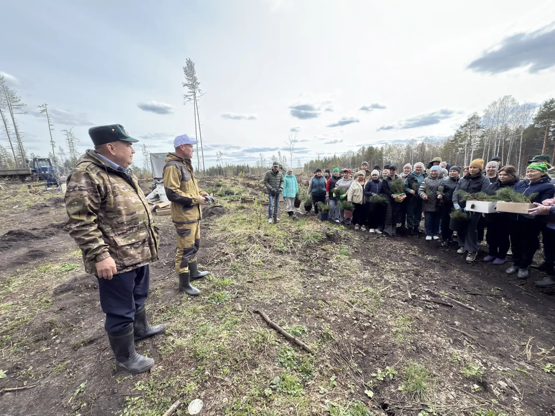 В этот день в масштабной акции приняли участие более ста пятидесяти человек. К месту посадки представители ГАУ РБ «Караидельский лесхоз» (директор Р.Гафаров) доставили из лесопитомника «Раздольинский» посадочный материал - девять тысяч саженцев сосны с закрытой корневой системой, размещенные на площади 4,5 га.