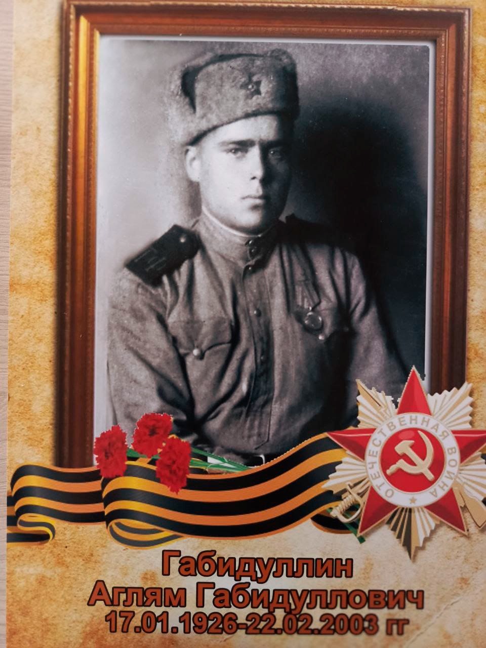 С октября 1943 года 17-летним пареньком Аглям Габидуллович Габидуллин служил на Дальневосточном фронте в составе 158-й армии 553-го стрелкового полка 84-го отдельного батальона. В начале 1945 года участвовал в боях за освобождение Кореи.