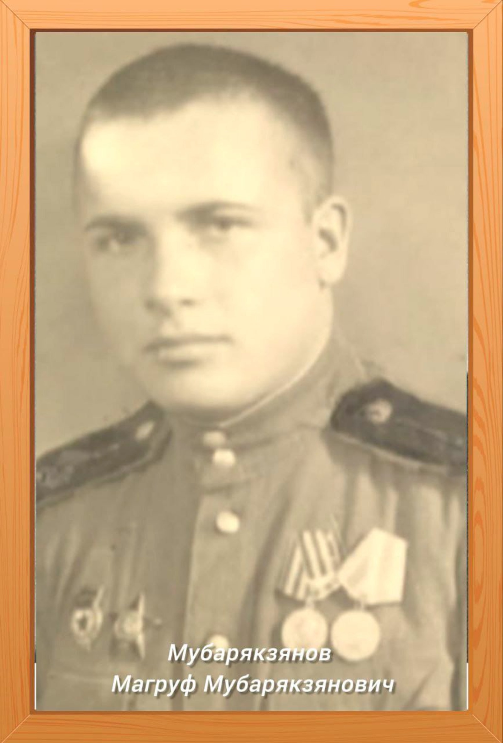 Магруф Мубарякзянов был призван в армию в декабре 1942 года. До августа 1943 года был курсантом, командиром отделения запасного стрелкового полка. Окончив курсы, он отправился на фронт. Эшелон, в котором ехал солдат к месту боевых действий, подвергся налету немецкой авиации, но Магруф Мубарякзянович остался в живых. Попал в дальнобойную артиллерию, воевал в составе 2-й гвардейской бригады. Боевое крещение принял на Курской дуге. В сентябре 1943 года был ранен и находился на лечении в эвакогоспитале в г. Киеве. После выздоровления М.Мубарякзянов отбыл в 335-й гвардейский стрелковый полк.