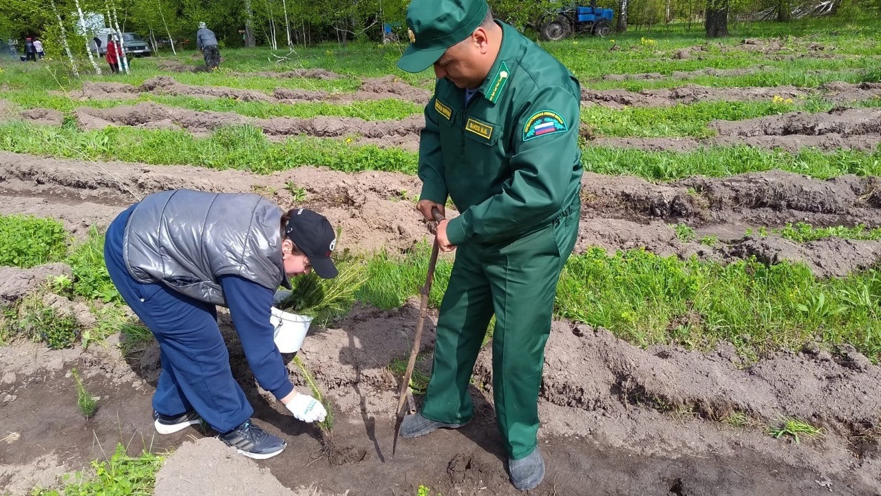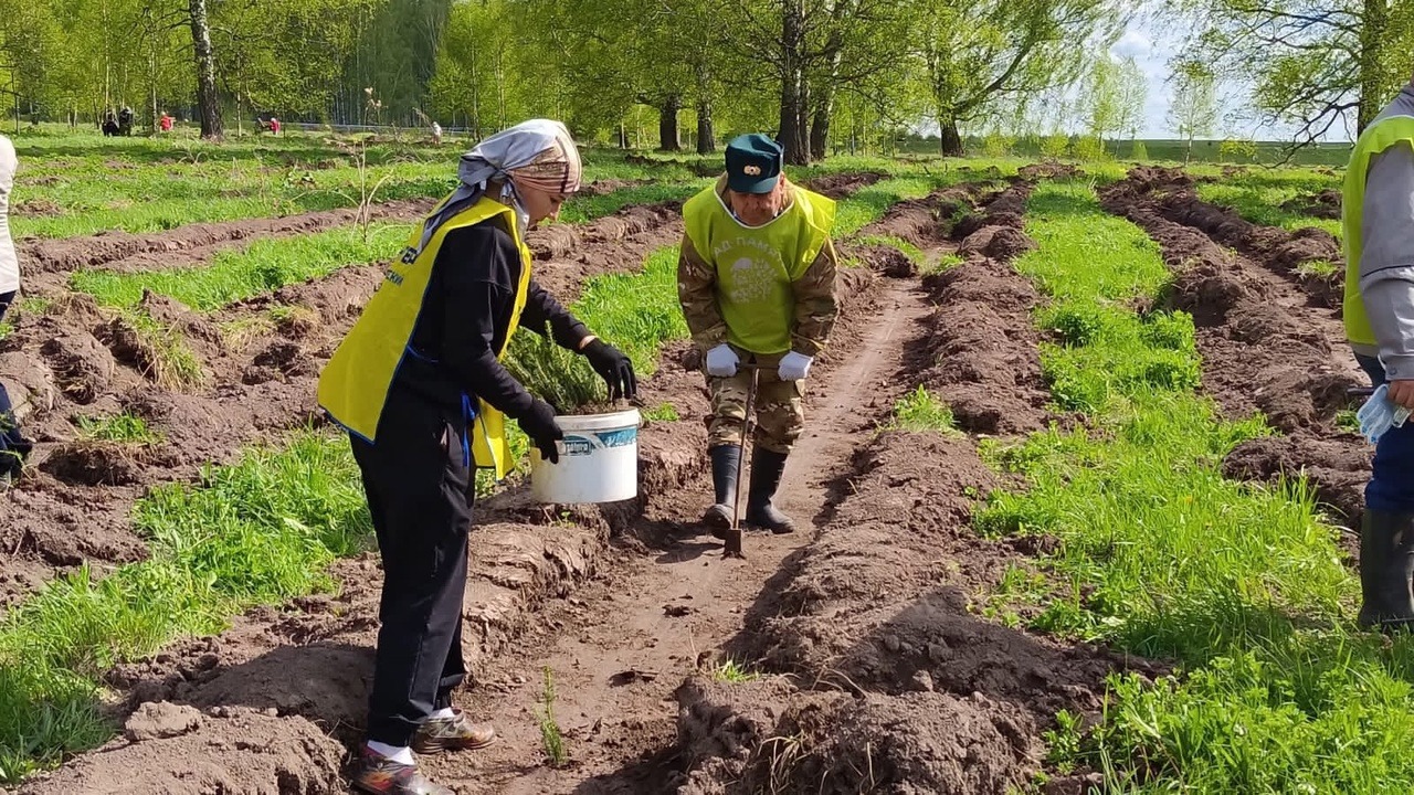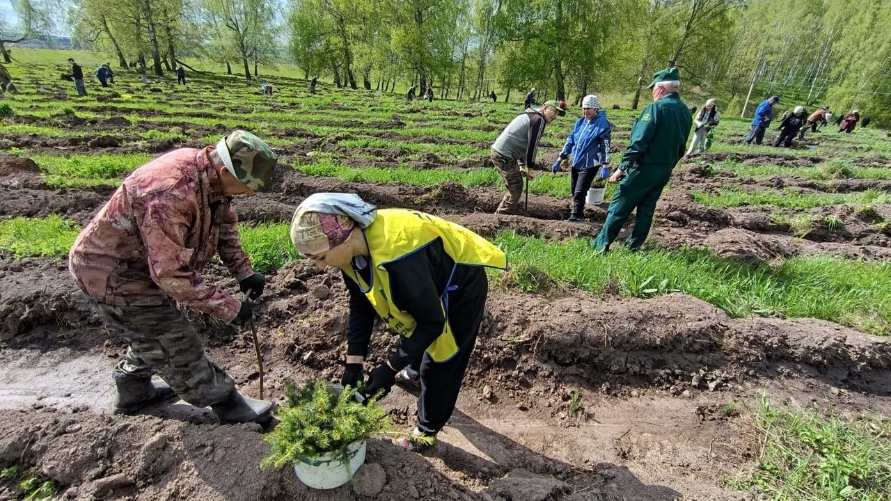 Участники акции высадили 16 тысяч саженцев трехлетней ели на площади 4 гектара.