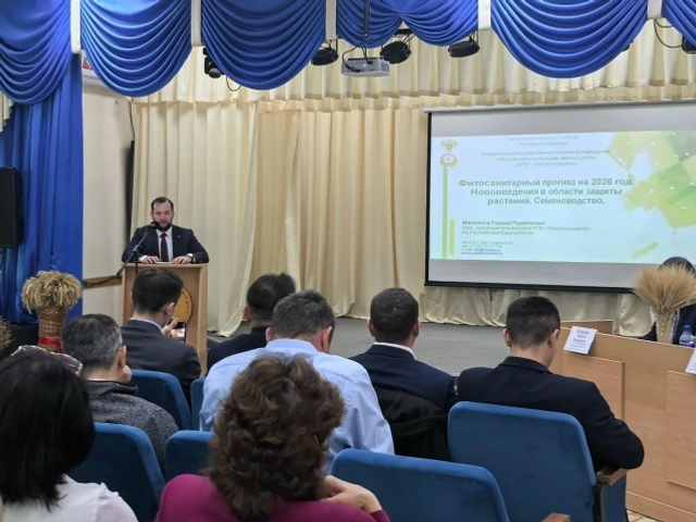 На конференции были рассмотрены фитосанитарный прогноз на 2026 год, методы борьбы с вредителями и сорняками (докладчик Радмир Мигранов, ФГБУ «Россельхозцентр»), а также агрохимическое и эколого-токсикологическое обследование земель (докладчик Данис Фазыльянов, ФГБУ «Росагрохимслужба»).